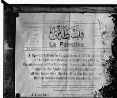 صفحه نخست روزنامه فلسطین چاپ ماه مارس 1925 در اعتراض به اعلامیه بالفور