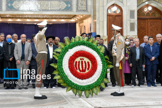 خمینی، نمایندگان جامعه کلیمیان در مراسم نثار تاج گل و تجدید میثاق با آرمانهای