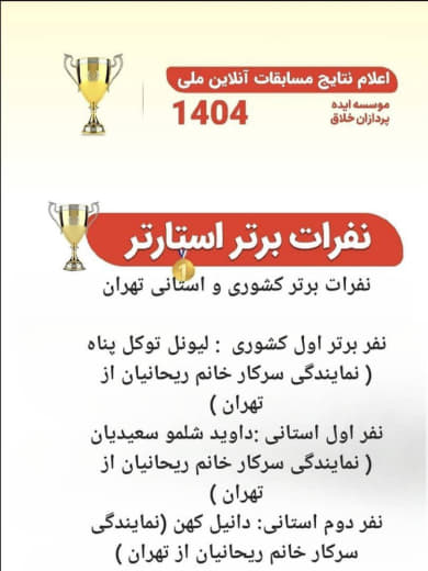 همزمان با اعلام نتایج مسابقات ملی آنلاین چرتکه (محاسبات ذهنی IQ) موسسه ایده‌پردازان، نونهالان مهد یلدای ۲، با مدیریت یائل هارونیان و با تدریس مونیکا ریحانیان، موفق به کسب نتایج درخشان و رتبه‌های برتر شدند.