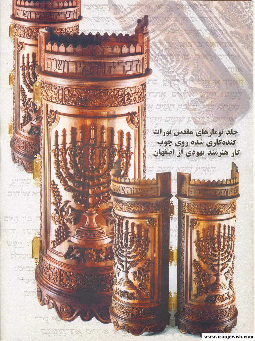 جلد تومارهای مقدس تورات کنده کاری شده روی چوب کار هنرمند یهودی از اصفهان